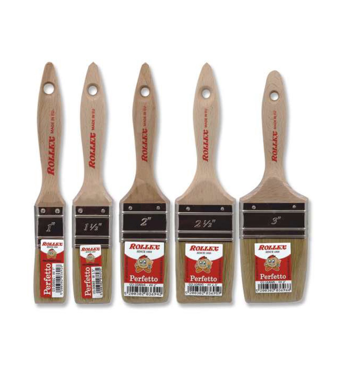 Επαγγελματικό πινέλο της σειράς PERFETTO σε λευκή και μαύρη τρίχα. Διπλό πινέλο, με λεία άβαφη ξύλινη λαβή σε φυσική απόχρωση και νικελωμένο στρόφι.
